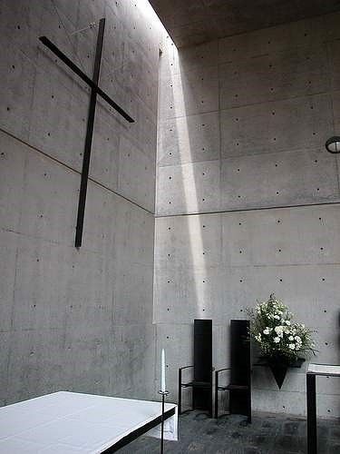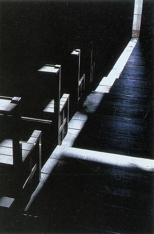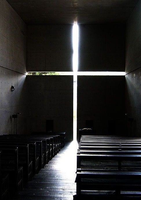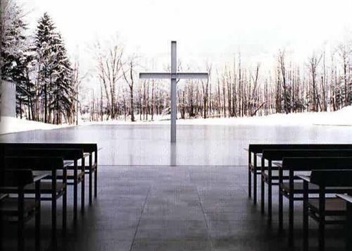 安藤忠雄设计的教堂三部曲便用生动的建筑语言述说了自然对世界的雕琢。当人们从水之教堂(Church on the Water)黑暗的旋转楼梯向下行走,来到中间有十字架的水池前,宗教礼仪的肃穆感在心底油然而生。室内空间面向水池的玻璃可以被通体打开,人们在这里可以与自然零距离互动;光之教堂(Church of Light)没有一个明显的入口,人们需要从一个狭窄的长廊进入。这间小小的教堂由一个混凝土长方体和一道与之成15度横贯的墙体构成。十字架的形状通过墙面负形空间表现出来,足以表达人心对宗教的敬畏之情;而风之教堂(Crystal Chapel)则建在一个坡面上,堪称设计师借助原本算是劣势的地理环境造就丰富空间的典范。纵深幽暗的长廊,出其不意的下降,高高在上的圣坛……安藤忠雄通过自然的变化和起伏,给观者带来了十字架前灵魂的救赎。