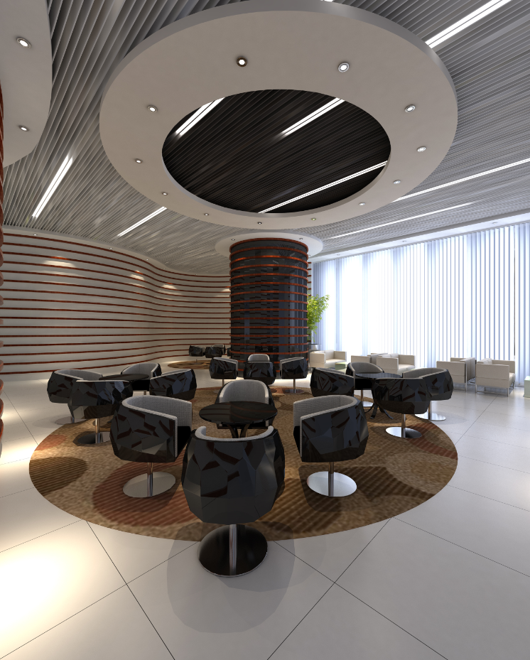 阳光透光窗户进入室内,将室内与室外连接在一起,这里给人的感觉就是自然、明亮、舒适,预示着企业的未来会越来越好,是一种美好的寓意。