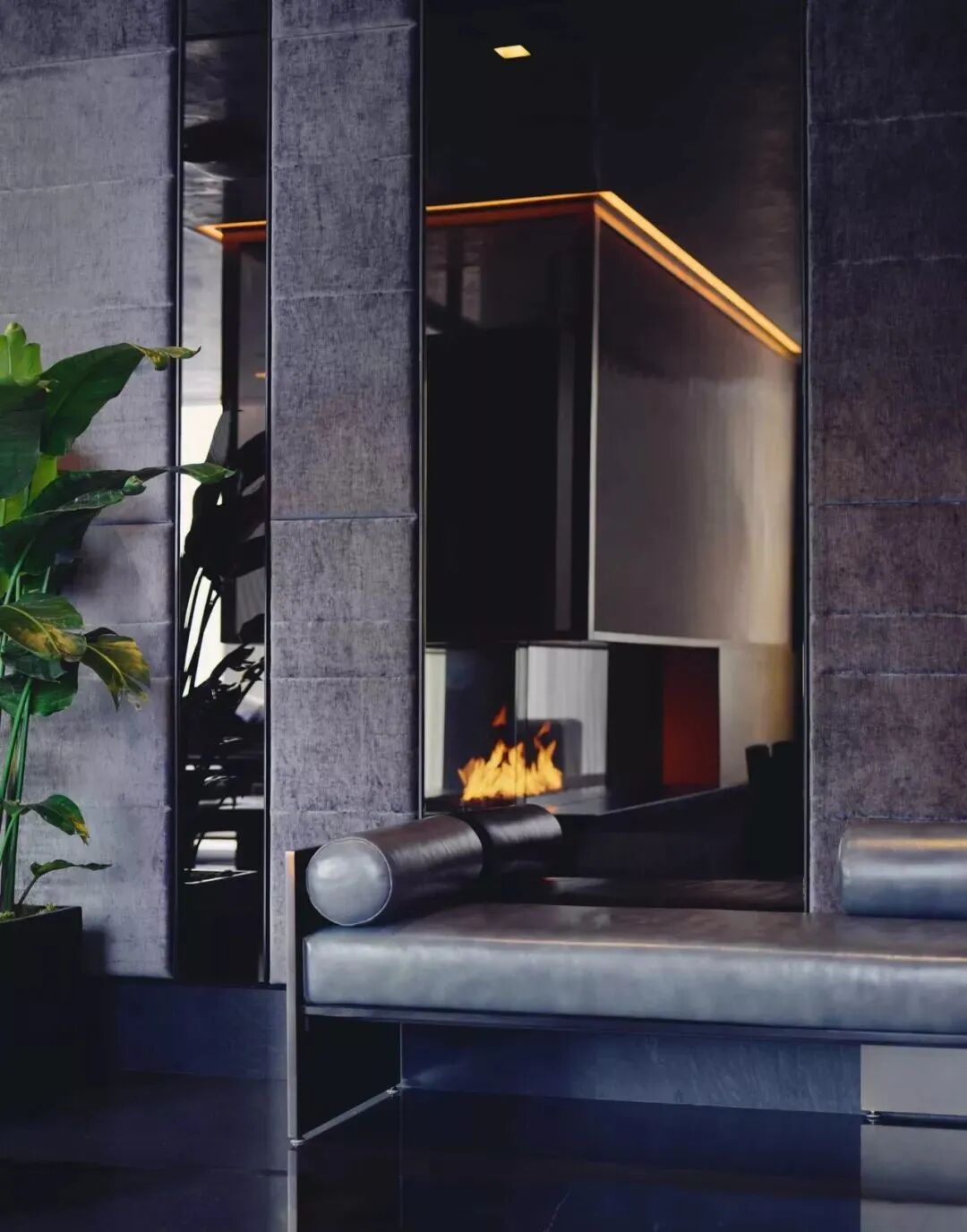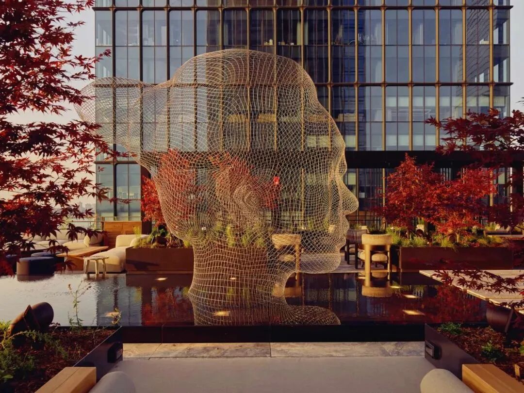 豪华的家具围绕着一个零边缘的倒影池,池顶是一个由设计师打造的巨大的艺术品。