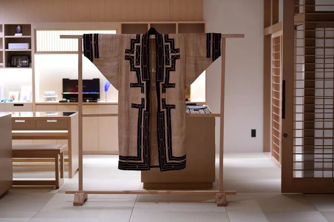 △ 树皮制成的衣服 商店展出了一件主人收藏的树皮制成的衣服。