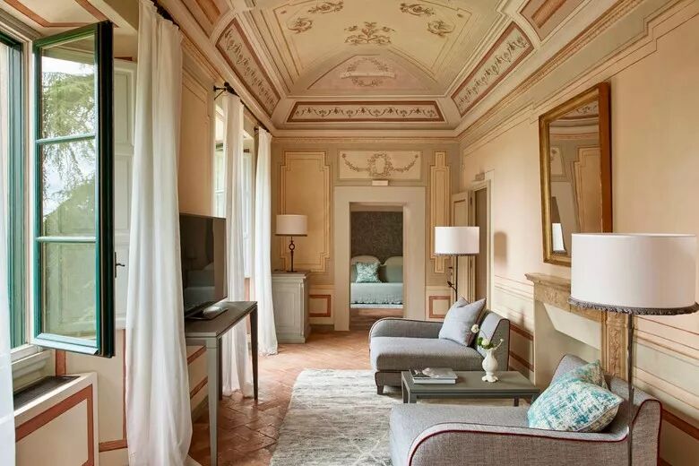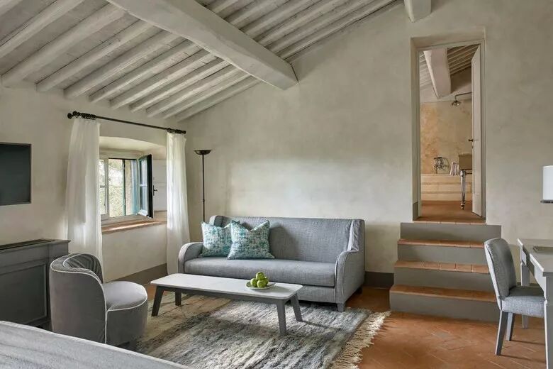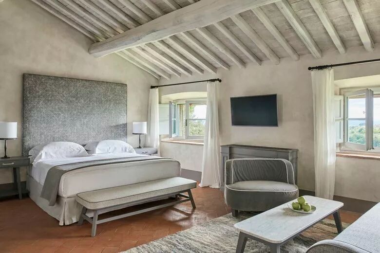 内部规划 50 间客房,请来米兰设计师 Paola Navone 亲自操刀,保存城堡昔日的红陶地砖、文艺复兴壁画牆身及拱顶天花板,并将 COMO 集团简约现代的饭店美学注入其内,打造静谧且富现代感的避世之所,在饭店各处均可欣赏托斯卡尼乡村风景,随著缓丘起伏的葡萄园和橄榄树林尽收眼底。